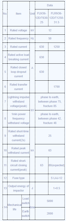 FLN36-12D/T630-20 Lastschalter verwendet SF6-Gas als Isolierung und Lichtbogenlöschen; hat drei Positionen: Schließen, Öffnen und Erdung; Dynamische und statische Kontakte haben eine doppelte Isolation, eine höhere Zuverlässigkeit; verlängerte elektrische Lebensdauer (E3 -Niveau, 100 -mal bewertet); verlängerte mechanische Lebensdauer (M2 -Ebene, 5000 -mal); Bewertet Wärmestabilitätsstrom (4S) 20ka; Schließen und Öffnen sind elektrischer oder manueller Betrieb, und die Erdungsposition ist manueller Betrieb. Die elektrische Betriebsleistung ist in AC220V, AC110V, DC220V erhältlich. DC110V, DC48V, DC24V; hat elektrische und manuelle Betriebsbetriebsverriegelung und Betriebsversorgungsverbindungsverbindungsschutzfunktion der Betriebsleistung;