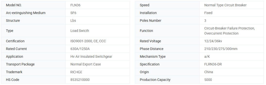 1: FL (R) N36 MV SF6 -Lastschalter in Indoor ist ein Innenschalter mit einer Nennspannung von 12 kV, 24 kV und 40,5 kV, wobei SF6 -Gas als Lichtbogenlösch- und Isoliermedium, einschließlich drei Stationen des Schließens, der Öffnung und des Erdens, verwendet wird. Es hat die Eigenschaften von geringer Größe, bequemer Installation und Verwendung und starker Anwendbarkeit auf die Umwelt.