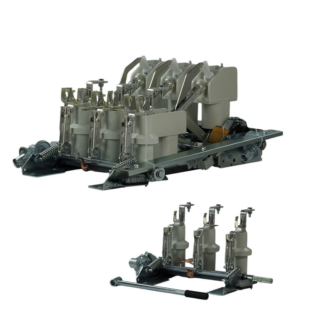 Der Standard-FN18-Schalter umfasst einen robusten Stahlrahmen mit Abstandsisolatoren, ein einzigartiges Lichtbogenlöschsystem vom Puffertyp, einen Betätigungsmechanismus und stromführende Komponenten, einschließlich Klingenunterbrecher mit Gussscharnieren und Backenanschlüssen.