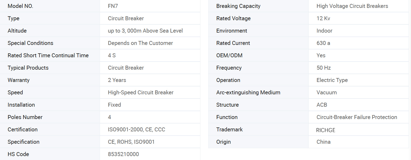 Der AC-Hochspannungs-Lastschalter FN7-12 ist ein neuartiger gaserzeugender Hochspannungs-Lastschalter für den Innenbereich. Es eignet sich für dreiphasige Wechselstromnetze mit Wechselstrom 50 Hz und einer Nennspannung von 12 kV. Es wird zum Unterbrechen des Laststroms und zum Schließen des Kurzschlussstroms verwendet.