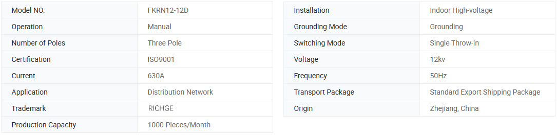 FKN12-12D/630-20 series air-blast load break switch (hereinafter referred to as FKRN12- 12D) and FKRN12-12D series air-blast load break switch and fuse combination apparatus are new series switchgear applies to three- phase electric distribution system of rated 12kV, acting as protecting and control apparatus for transformers, cable and over head wiring.