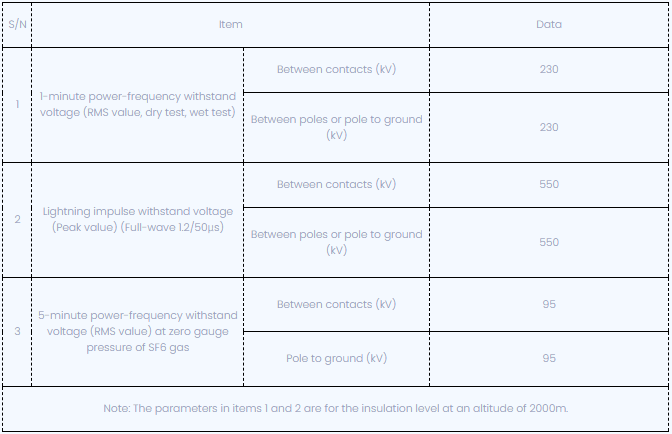 Aufgrund der inhärenten hohen Isolationsfestigkeit von Schwefelhexafluoridgas und der optimalen Kontaktbewegung des Leistungsschalters durchbricht der Leistungsschalter den kapazitiven Strom ohne Registrierung. Der externe Isolationsniveau ist hoch, die externe Isolierung ist mit einem großen Kriechenteilung ausgelegt, der Abstand von Kriechverhältnissen beträgt ≥ 31 mm/kV und die Leistung der Schmutzfestigkeit ist ausgezeichnet. Es kann auch in rauen Umgebungen sicher funktionieren.