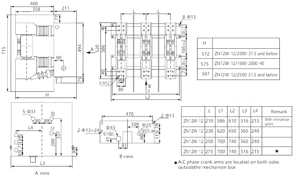 Der Leistungsschaltermechanismus ist in den Schalter integriert, und der Spezialverschiebungstypantriebsmechanismus kann durch Wechselstrom- und DC -Energiespeicher betrieben werden oder manuell betrieben werden.