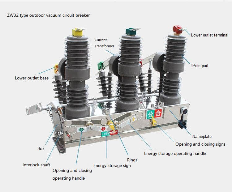 ZW32-12 Outdoor Vacuum Circuit Breaker (im Folgenden als Leistungsschalter bezeichnet) ist eine Ausrüstung für die Stromverteilung im Freien mit einer Nennspannung von 12 kV und dreiphasigen AC 50Hz. Es wird hauptsächlich zum Brechen und Schließen des Laststroms, des Überlaststroms und des Kurzschlussstroms im Stromversorgungssystem verwendet. Es ist für Schutz und Kontrolle in Umspann- und Industrie- und Bergbauunternehmens -Umspannwerksystemen sowie Orte geeignet, an denen ländliche Stromnetze häufig arbeiten.